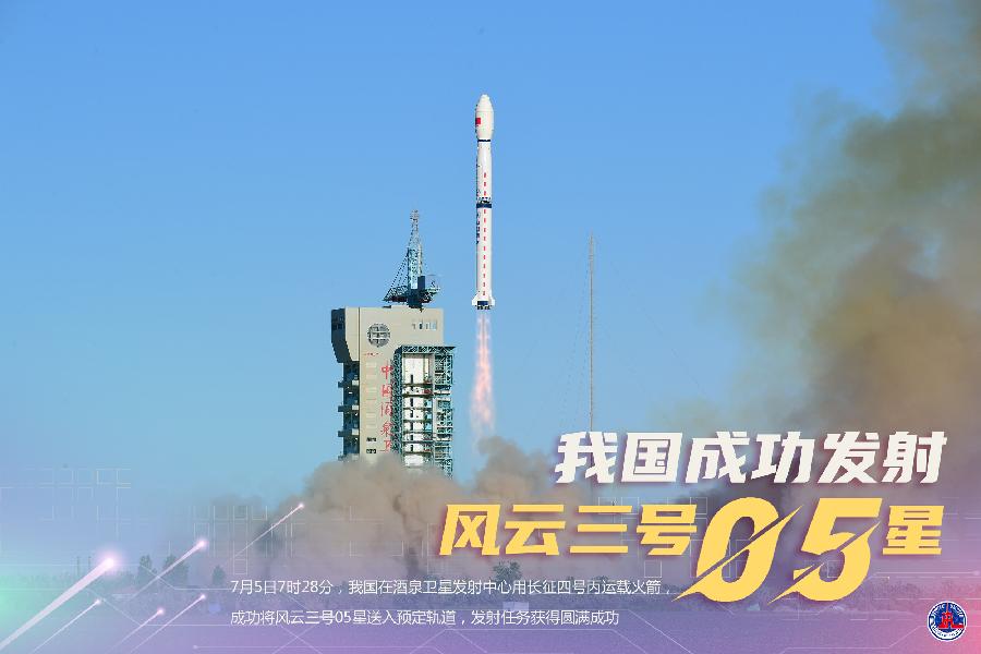 7月5日7時28分,我國在酒泉衛(wèi)星發(fā)射中心用長征四號丙運載火箭,成功將風云三號05星送入預(yù)定軌道,發(fā)射任務(wù)獲得圓滿成功。新華社發(fā)(汪江波 攝)