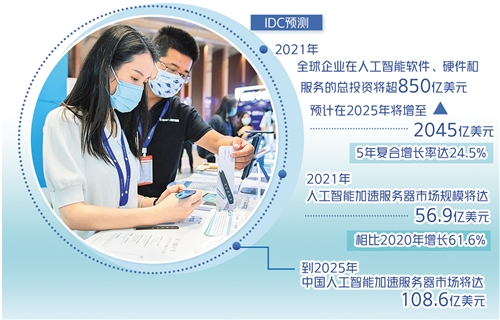據(jù)了解,全球已有60多個(gè)國(guó)家和地區(qū)出臺(tái)人工智能政策,發(fā)布國(guó)家級(jí)人工智能戰(zhàn)略。IDC預(yù)測(cè),2021年全球企業(yè)在人工智能軟件、硬件和服務(wù)的總投資將超850億美元,預(yù)計(jì)在2025年將增至2045億美元,5年復(fù)合增長(zhǎng)率達(dá)24.5%。