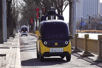 圖為兩輛無人車正在北京經(jīng)濟技術(shù)開發(fā)區(qū)街頭行駛。 新華社記者 鞠煥宗 攝