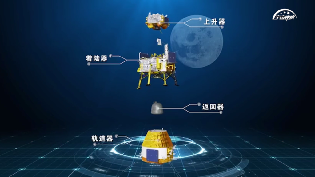 嫦娥六號四器組合體示意圖。