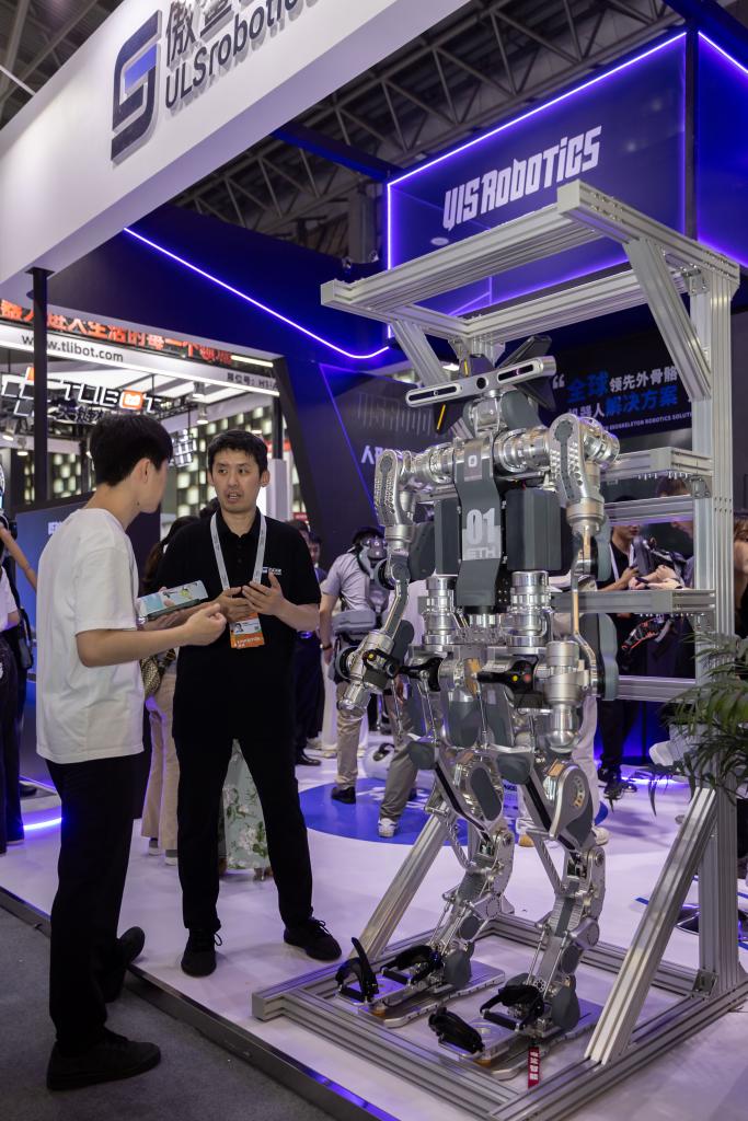 “這臺(tái)人形機(jī)器人可實(shí)現(xiàn)人形與外骨骼雙模式工作,結(jié)合力控與感知能力、大模型人工智能訓(xùn)練,完成在礦山、電力、應(yīng)急等野外復(fù)雜環(huán)境中的作業(yè)、任務(wù)等?!鄙虾0刘徶悄芄臼袌?chǎng)總監(jiān)張華說(shuō)。
