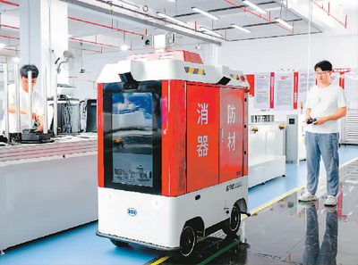 福建省福州市倉山區(qū)大力發(fā)展以智能制造為主導的新一代信息技術(shù)產(chǎn)業(yè),通過人才引進、科技創(chuàng)新、強化金融服務和落實財稅等惠企政策,積極打造數(shù)字經(jīng)濟核心產(chǎn)業(yè)集聚區(qū)。圖為技術(shù)人員在福建漢特云智能科技有限公司生產(chǎn)線上調(diào)試消防智能巡邏機器人。新華社記者 魏培全攝