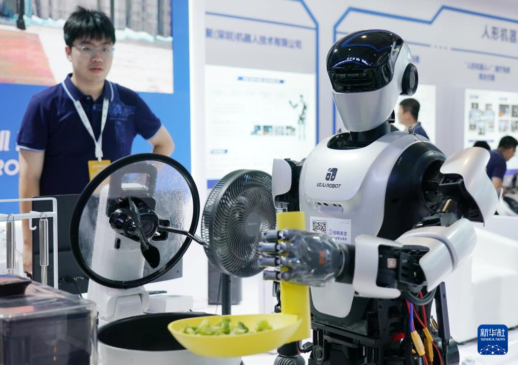 一款人形機(jī)器人在2024世界機(jī)器人大會(huì)上炒菜。新華社記者 張晨霖 攝