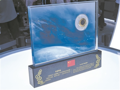 圖為嫦娥六號(hào)月壤樣品在“中國航天”展臺(tái)向公眾展出。李儀攝