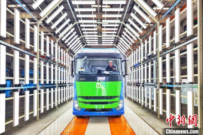 3月5日,中國(guó)首批100輛200KW氫能重卡在天津陸續(xù)下線。記者 佟郁 攝