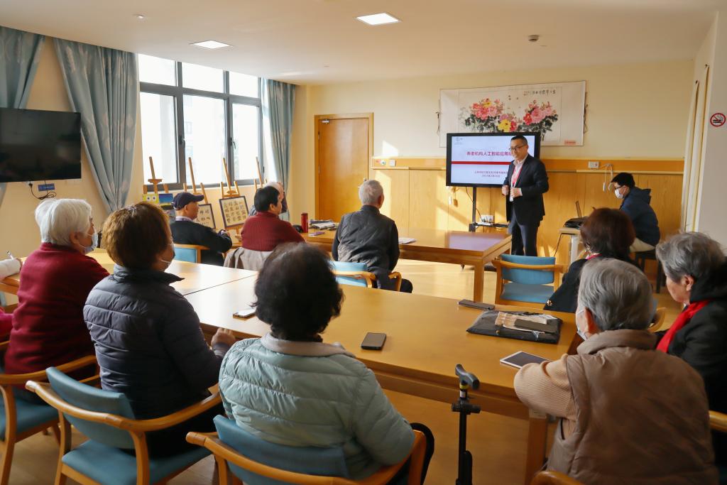 上海市虹口區(qū)彩虹灣老年福利院的活動室內(nèi)正在舉辦學(xué)習(xí)AI使用方法的“小鯨魚課堂”(2月26日攝)。新華社記者 唐斯琦 攝