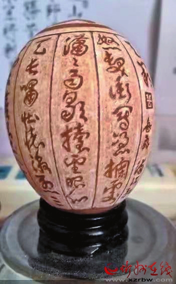 有位岳氏宗親,還寫了一首詩,稱贊岳利民的蛋雕技藝:“蛋雕技藝神奇現(xiàn),水韻山魂栩栩生。獨具匠心巧刻繪,操持刀具任縱橫。山川秀麗鮮花艷,人物鮮明圖案清。方寸之間雕畫棟,清新雅致鳥爭鳴。”