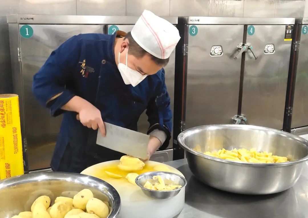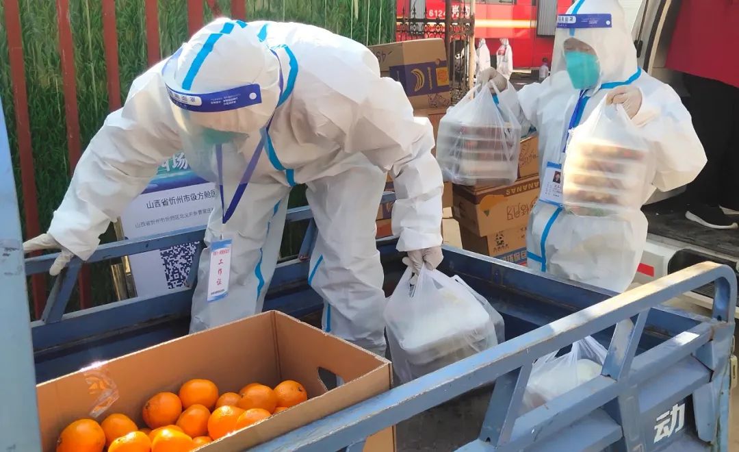 市級方艙醫(yī)院啟用以來,作為抗疫主力軍的護(hù)航者,后勤是這場疫情保衛(wèi)戰(zhàn)的關(guān)鍵一環(huán)。為做好方艙醫(yī)院運(yùn)行后的餐飲、生活用品及工作人員的住宿等后勤保障服務(wù)工作,忻州市級方艙醫(yī)院后勤保障工作組夜以繼日,辛苦奉獻(xiàn),始終和醫(yī)療團(tuán)隊(duì)從黑夜到黎明奮戰(zhàn)在一線。18日中午12點(diǎn),記者來到忻州市方艙醫(yī)院大門口看到,方艙內(nèi)外保障組工作人員正在交接餐食,一包包盒飯、水果從餐車拿出來放到三輪車上,然后由艙內(nèi)后勤保障組工作人員送到方艙內(nèi)醫(yī)護(hù)人員的手中。
