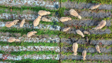 還記得那群北上南歸、全球矚目的野象嗎?在野象老家云南省西雙版納傣族自治州,記者最近追到這個(gè)象群的最新消息:南歸之后,“短鼻家族”野象健康狀況良好,小象明顯長(zhǎng)胖了,象群吸收了新成員,然后一分為二,分成兩群在不同區(qū)域活動(dòng)。 專家介紹,野象是典型的群居動(dòng)物,“野象分家”是象群健康繁衍的證明。在全球亞洲象數(shù)量減少的背景下,中國(guó)野象出現(xiàn)“嬰兒潮”,象群不斷壯大和分家,成為我國(guó)生態(tài)文明建設(shè)和生物多樣性保護(hù)的標(biāo)志性成果。 小象長(zhǎng)胖了 象群分家了 5月9日,臨近傍晚,在西雙版納州景洪市大渡崗鄉(xiāng)大荒壩村,彭金福不時(shí)舉起望遠(yuǎn)鏡觀察遠(yuǎn)處的山林。他估摸著:“這個(gè)點(diǎn)大象該下山了?!?/p> 不出所料,過(guò)了一會(huì)兒,20多頭“巨獸”從樹林中緩緩走出,優(yōu)哉游哉地?fù)u著耳朵、甩著尾巴,來(lái)到一片西瓜地里“大快朵頤”。 “大象一般傍晚5點(diǎn)多鐘出來(lái)找吃的,早上八九點(diǎn)鐘回林子里?!迸斫鸶R贿呎f(shuō)著,一邊操作無(wú)人機(jī),接近象群,錄像拍照。他的徒弟普永兵打開微信群,發(fā)出預(yù)警消息,提醒村民不要靠近。 彭金福和普永兵都是亞洲象監(jiān)測(cè)員,負(fù)責(zé)監(jiān)測(cè)大渡崗片區(qū)象群。他們通過(guò)路面監(jiān)測(cè)、空中監(jiān)測(cè)、熱成像監(jiān)測(cè)等方式掌握象群蹤跡,為附近村民提供預(yù)警,并為科學(xué)研究提供監(jiān)測(cè)數(shù)據(jù)。 象群飽餐一頓,到了玩耍時(shí)間。它們轉(zhuǎn)到一個(gè)魚塘邊,幾頭野象滑到魚塘里“洗澡”,在水里不停翻滾,嚇得魚兒都跳出了水面。在岸上,有的野象把水桶踢著玩,還有的爭(zhēng)搶水管當(dāng)玩具…… 長(zhǎng)期跟蹤監(jiān)測(cè)野象,彭金福能根據(jù)野象體型、鼻子、耳朵等特征識(shí)別這些“老朋友”。他介紹,這群野象多數(shù)屬于“然然家族”,有7頭來(lái)自北上南歸的“短鼻家族”,包括4頭成年母象、1頭亞成年公象和2頭小象,“小象比剛回來(lái)的時(shí)候胖了不少”。 2021年,“短鼻家族”15頭野象以一場(chǎng)罕見(jiàn)的長(zhǎng)途旅行,引起全球廣泛關(guān)注。象群歷時(shí)110多天,行進(jìn)1300多公里,最終在人們護(hù)送下,平安返回它們最初出發(fā)之地。 西雙版納州亞洲象保護(hù)管理中心監(jiān)測(cè)室主任周晨浩介紹,自2021年12月9日回到原棲息地以來(lái),“短鼻家族”一直在西雙版納國(guó)家級(jí)自然保護(hù)區(qū)勐養(yǎng)片區(qū)及周邊活動(dòng)?!岸杭竟?jié),它們主要在野象谷附近活動(dòng);夏秋季節(jié),它們會(huì)到森林邊緣的村寨覓食?!?/p> 持續(xù)監(jiān)測(cè)發(fā)現(xiàn),“短鼻家族”有時(shí)有個(gè)體離群或回歸,有時(shí)吸納新成員。2022年6月,“短鼻家族”一分為二,分成兩群在不同區(qū)域活動(dòng)。目前,“短鼻家族”已擴(kuò)大到20頭,其中13頭活動(dòng)在普文片區(qū),7頭與“然然家族”23頭野象一起活動(dòng)在大渡崗片區(qū)。 “跟其他象群相比,‘短鼻家族’不怎么怕人?!逼瘴钠瑓^(qū)亞洲象監(jiān)測(cè)員牛建成說(shuō),“可能是它們‘見(jiàn)多識(shí)廣’,知道人類不會(huì)傷害它們吧。它們對(duì)人類也很友善,回來(lái)后沒(méi)發(fā)生過(guò)傷人事件?!?/p> “‘短鼻家族’有幾次還想北上,被我們用卡車堵路、投食引導(dǎo)給‘勸返’了?!迸=ǔ烧f(shuō)。有關(guān)部門對(duì)亞洲象適宜棲息區(qū)域進(jìn)行了詳細(xì)踏勘調(diào)查,結(jié)合村情和農(nóng)事活動(dòng)等情況,科學(xué)劃定了亞洲象安全線,采取柔性引導(dǎo)策略,防止象群無(wú)序擴(kuò)散。 云南亞洲象種群正進(jìn)入快速增長(zhǎng)期 亞洲象是亞洲現(xiàn)存體型最大的陸生動(dòng)物、熱帶森林的旗艦物種,被我國(guó)列為國(guó)家一級(jí)重點(diǎn)保護(hù)野生動(dòng)物,被世界自然保護(hù)聯(lián)盟評(píng)估為“瀕?!蔽锓N。我國(guó)野象主要分布在云南西雙版納、普洱和臨滄。 國(guó)家林草局亞洲象研究中心主任陳飛介紹,亞洲象是典型的群居動(dòng)物,有較為復(fù)雜的社群結(jié)構(gòu),可以分為家庭、家族、氏族和亞種群4個(gè)層次,分別指成年雌象及其子女組成家庭;兩個(gè)或多個(gè)姊妹雌象及各自子女組成家族,家族即人們常說(shuō)的象群;多個(gè)家族可能會(huì)在短期內(nèi)聚集形成氏族;亞種群則指同一區(qū)域內(nèi)的各氏族總和。 “一個(gè)家族通常有8頭到15頭野象,由最年長(zhǎng)的雌象擔(dān)任家族的首領(lǐng),引導(dǎo)象群遷移、覓食和休憩?!标愶w說(shuō),當(dāng)種群數(shù)量增長(zhǎng)到一定規(guī)模,血緣關(guān)系較近的姊妹或母女會(huì)帶著自己子女成立新的家族,尋找新的棲息區(qū)域,所以象群會(huì)有分家的現(xiàn)象。 “野象分家、合群都是正?,F(xiàn)象,是為了滿足個(gè)體及群體更好地生存繁衍?!标愶w介紹,亞洲象體型龐大,每天所需食物和飲水多,所以要不停地遷徙以覓食、尋找水源和補(bǔ)充鹽分的“硝塘”。在這個(gè)過(guò)程中,一個(gè)家族可能會(huì)與別的家族合群,然后再分開。 據(jù)介紹,野象家族之間的基因交流是靠成年雄象來(lái)完成的,雄性個(gè)體成年后就會(huì)離開原生象群,這是亞洲象規(guī)避