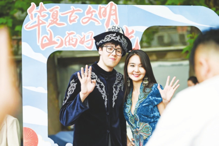 當(dāng)日活動(dòng)吸引了來(lái)自世界各地的3萬(wàn)余名師生及社會(huì)各界人士。獨(dú)唱《人說(shuō)山西好風(fēng)光》《千年一塔》,舞蹈《醋之韻》《翼城花鼓》等贏得師生們熱烈掌聲。在五大洲文化展區(qū),絳州木版年畫傳承人吳百鎖現(xiàn)場(chǎng)印制木版年畫贈(zèng)送師生,成為一道亮麗風(fēng)景。廣靈剪紙、應(yīng)縣木塔模型、黎侯虎、寧武毛健茶等吸引各國(guó)留學(xué)生駐足欣賞?!叭A夏古文明山西好風(fēng)光”主題相框前,無(wú)數(shù)外國(guó)友人饒有興趣交流互動(dòng),拍照留念?!吧轿髟亍被鸨本┱Z(yǔ)言大學(xué)世界文化節(jié)。