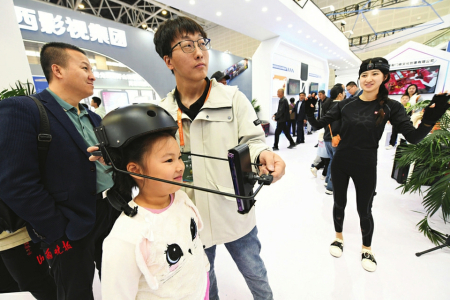 1.在第六屆山西文化產(chǎn)業(yè)博覽交易會(huì)現(xiàn)場,觀展者在體驗(yàn)虛擬數(shù)字人。