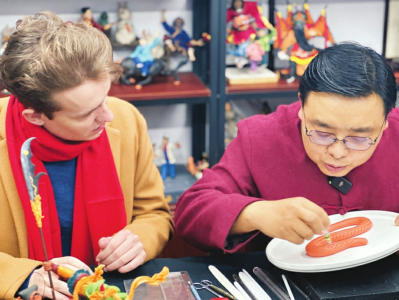 中國(guó)年的味道離不開(kāi)非遺的加持,龍年春節(jié),新鮮有趣的非遺故事讓更多外國(guó)人喜歡上非遺大省山西。春節(jié)期間,山西衛(wèi)視融媒體推出“全世界愛(ài)過(guò)中國(guó)年”特別策劃,邀請(qǐng)7位來(lái)自世界各地的“非遺體驗(yàn)官”到山西拜師學(xué)藝體驗(yàn)?zāi)晁?,在山西多樣的非遺年俗里“遺”起過(guò)龍年。圍著大紅圍巾的英國(guó)小伙Rees跟著省級(jí)非遺傳承人衛(wèi)興安學(xué)習(xí)浮山面塑,聽(tīng)說(shuō)面塑是面做的,拿起就要咬一口,可愛(ài)又好笑;屬龍的南非姑娘陳諾第一次了解本命年,并獲得絳州木版年畫(huà)省級(jí)非遺傳承人吳百鎖贈(zèng)與的新年禮物——拓印“龍”年畫(huà);以“過(guò)年期間吃遍山西美食”為目標(biāo)的巴基斯坦女孩代妮婭在太原工藝美術(shù)大師孟艷萍指導(dǎo)下一氣呵成完成糖畫(huà)制作,不愧是個(gè)“小吃貨”……7位“非遺體驗(yàn)官”紛紛表白對(duì)山西非遺的熱愛(ài),還有什么比外國(guó)人自己的親身經(jīng)歷更有說(shuō)服力、感染力呢?山西衛(wèi)視該節(jié)目制作團(tuán)隊(duì)相關(guān)負(fù)責(zé)人楊雅菲說(shuō):“我們希望通過(guò)外國(guó)人的視角,為世界送上一場(chǎng)熱鬧喜慶的中國(guó)非遺文化盛宴?!?/p>