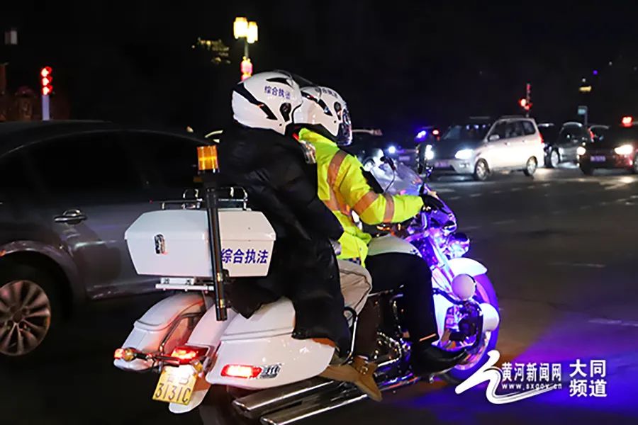 在人流如織的古城街頭,大同平城區(qū)鐵騎隊員們?nèi)找箞允?,全時段管理,快速、便捷排查轄區(qū)內(nèi)各主次干道及重點區(qū)域的死角、盲區(qū),疏導攤點,規(guī)范非機動車停放,幫助前來求助的旅客與市民,做到了城市管理“不打烊”,“城管藍”春節(jié)不斷檔。