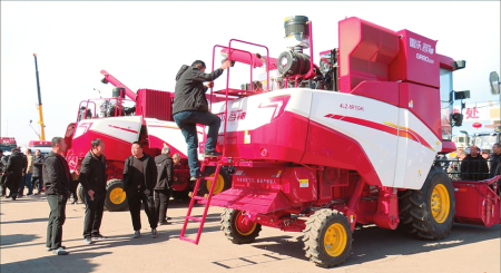“這臺(tái)機(jī)械功率強(qiáng)、馬力大,輕便好操作,性價(jià)比高?!?月16日一大早,在祁縣老權(quán)農(nóng)機(jī)有限公司,播種機(jī)、收割機(jī)、旋耕機(jī)等一臺(tái)臺(tái)嶄新的農(nóng)機(jī)具整齊停放在院內(nèi),公司總經(jīng)理馬麗兵正向購(gòu)買農(nóng)機(jī)具的農(nóng)戶介紹著設(shè)備的功能和價(jià)格。