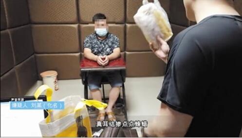 “耳結(jié)是平時(shí)收集的耳屎和蜂蠟混合做成的”劉某交代,平時(shí)會(huì)將免費(fèi)掏的耳屎收集起來,在家做成“耳結(jié)”,在合適的時(shí)候把“耳結(jié)”放入客人耳中。耳朵有問題的老人“求醫(yī)心切”更容易上鉤,價(jià)格會(huì)按老人的穿著打扮試探性說一個(gè)相對(duì)高一點(diǎn)的,如果老人嫌貴就降價(jià),等老人同意了再“動(dòng)手”,這樣幾乎不會(huì)失手?!拔覕[攤掏耳結(jié)已經(jīng)兩年了,從來沒有人報(bào)警”被審訊時(shí),劉某仍然不相信自己因?yàn)檫@事進(jìn)派出所。