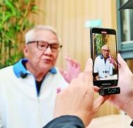 在天津靜雅老人院內,年輕人為老人拍攝短視頻。新華社發(fā)