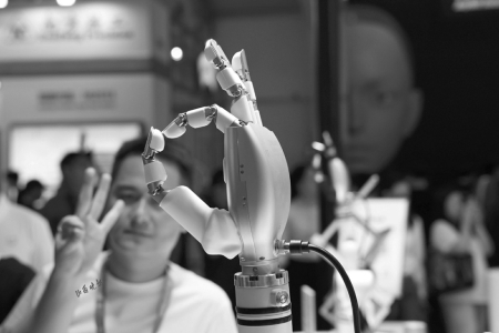 觀(guān)眾走進(jìn)展會(huì),仿佛來(lái)到未來(lái)世界:無(wú)論是在人群中來(lái)回穿梭的機(jī)器人、機(jī)器狗“宣傳小隊(duì)”,還是在各種模擬場(chǎng)景中展示獨(dú)特能力的人形機(jī)器人,或者是靈巧的機(jī)械手、機(jī)械臂,都充滿(mǎn)了科幻色彩。那些曾經(jīng)只存在于科幻電影的場(chǎng)景,在本屆大會(huì)集體“破圈”。