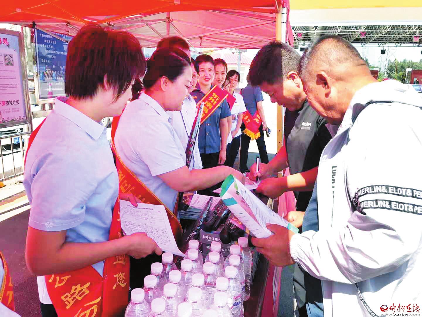 高速公路忻州收費(fèi)站組織全體黨員于9月2日上午在收費(fèi)站廣場開展?fàn)I銷宣傳活動,宣傳ETC秒過收費(fèi)站便捷通行的好處,受到群眾歡迎。 馮艷花 攝