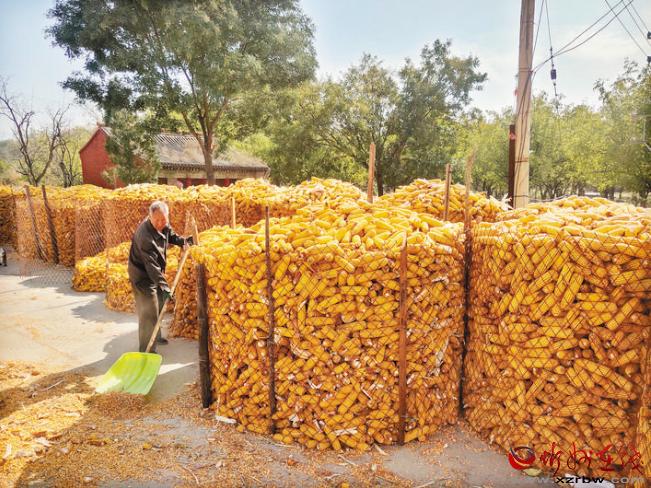 定襄縣河邊鎮(zhèn)村民晾曬玉米