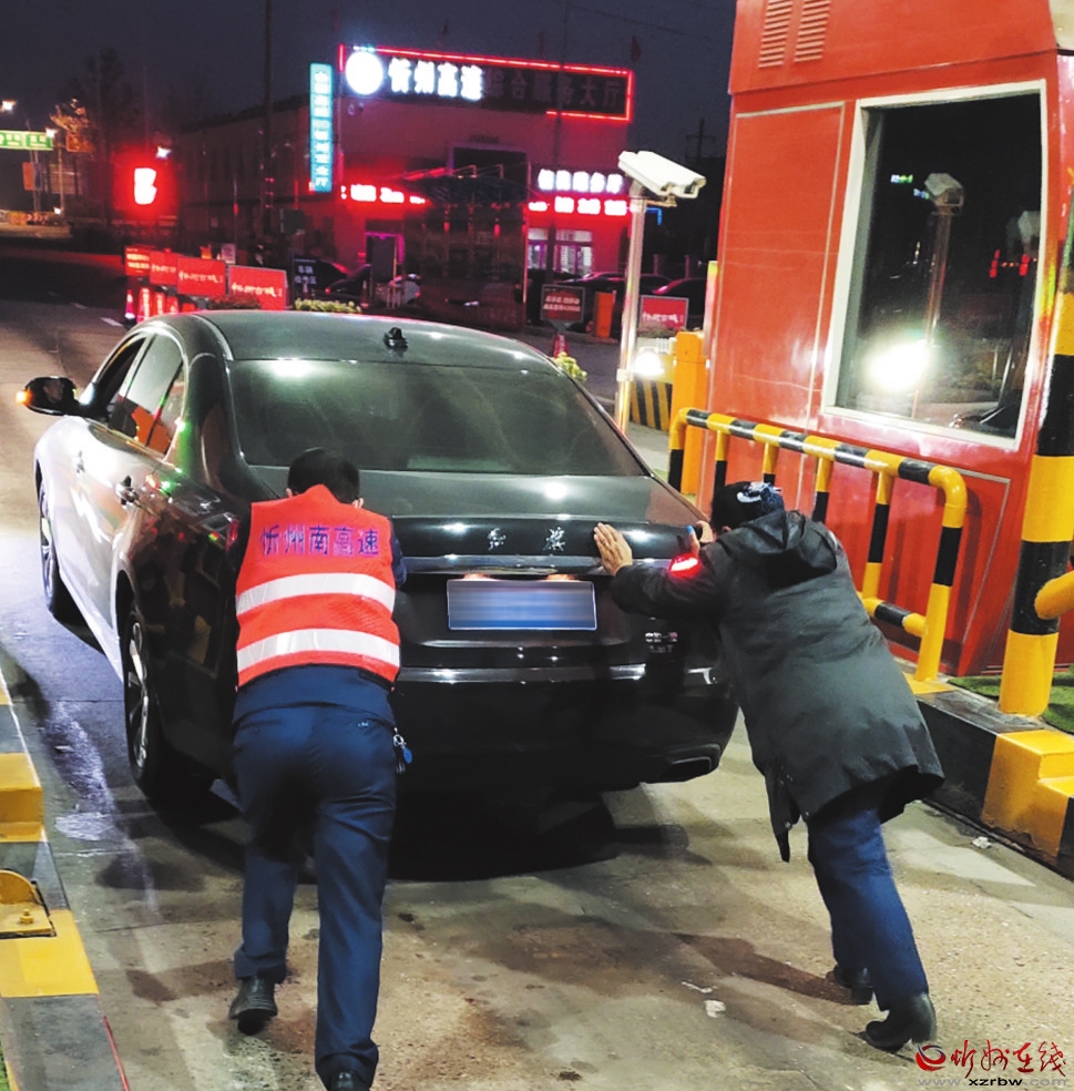1月3日,南高速忻州收費站出口駛?cè)胍惠v黑色紅旗小客車,在起步離開時車輛突發(fā)故障無法正常駛出車道。值班班長得知后在安慰司乘人員情緒的同時,立即組織工作人員一起將車推出收費車道停放至安全區(qū)域,并擺放好隔離墩,防止事故發(fā)生,同時積極為司機聯(lián)系附近修理廠,安排維修人員前來維修。( 李瑞軍 莊新華 攝影報道)