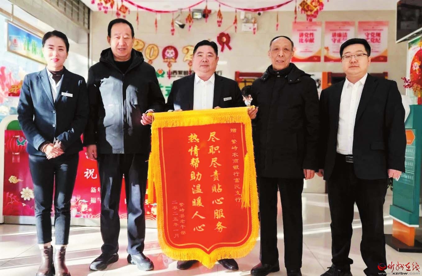 “咱農(nóng)商銀行的服務真是太好了!”近日,一位老干部將一面寫有“盡職盡責貼心服務 熱情幫助溫暖人心”的錦旗,送到了繁峙農(nóng)商銀行富民支行。在首季“開門紅”期間,該行工作人員以專業(yè)的素養(yǎng)和熱情的態(tài)度,為客戶提供了暖心服務,贏得了客戶的好評,樹立了農(nóng)商行的良好社會形象。(郭凱文攝