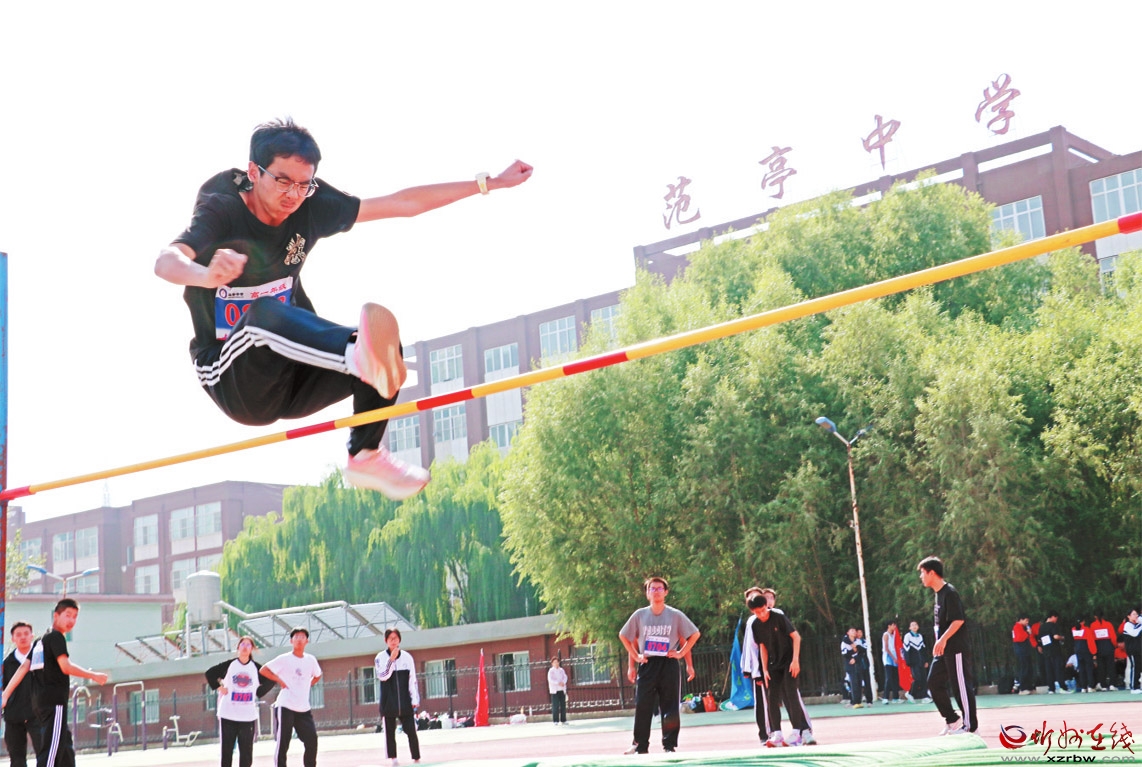 近日,2025年原平市中小學(xué)秋季田徑運(yùn)動(dòng)會(huì)在原平市范亭中學(xué)體育場(chǎng)舉行。圖為參賽選手在跳高比賽中大顯身手。 (褚 震攝