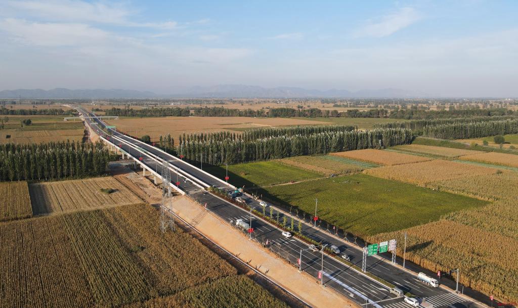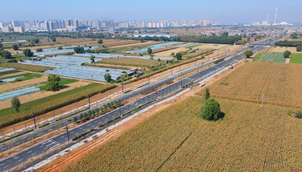 太忻大道猶如“長(zhǎng)龍”穿越田野,美如畫(huà)卷。 記者 張存良攝