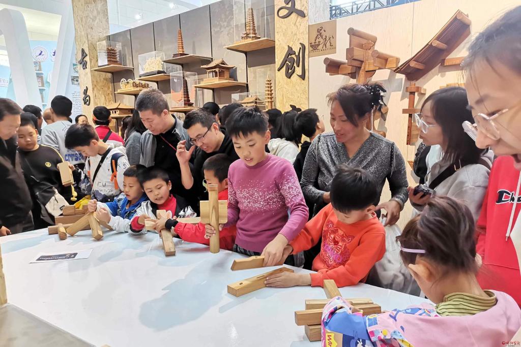 小朋友在展區(qū)體驗榫卯連接。宮清華 攝
