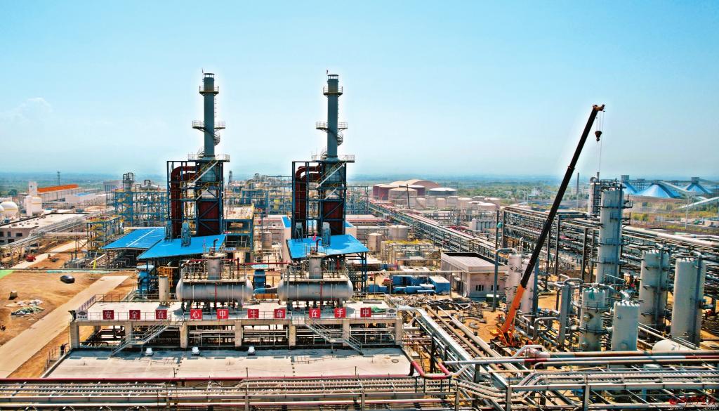 同德科創(chuàng)PBAT新材料產(chǎn)業(yè)鏈一體化項(xiàng)目建設(shè)現(xiàn)場。 本報(bào)記者 張存良攝