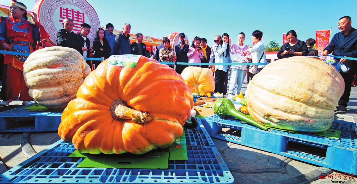 圖為活動(dòng)現(xiàn)場(chǎng)展示的260公斤的大南瓜。