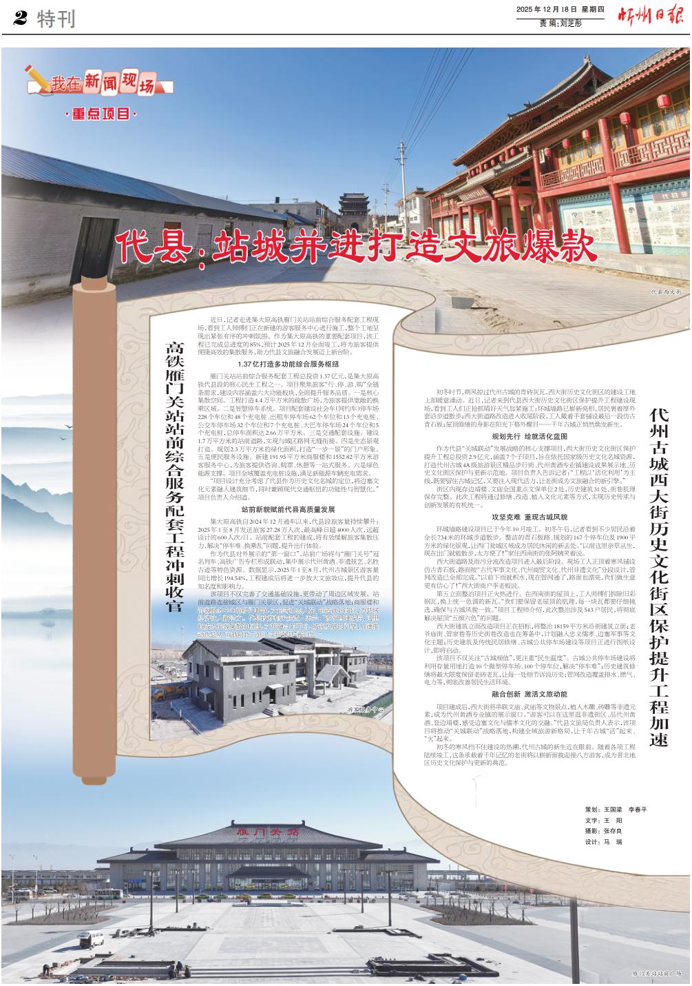 作為代縣對外展示的“第一窗口”,站前廣場將與“雁門關號”冠名列車、高鐵廣告專欄形成聯(lián)動,集中展示代州黃酒、非遺技藝、名勝古跡等特色資源。數(shù)據(jù)顯示,2025年1至8月,代州古城景區(qū)游客量同比增長194.54%,工程建成后將進一步放大文旅效應,提升代縣的知名度和影響力。