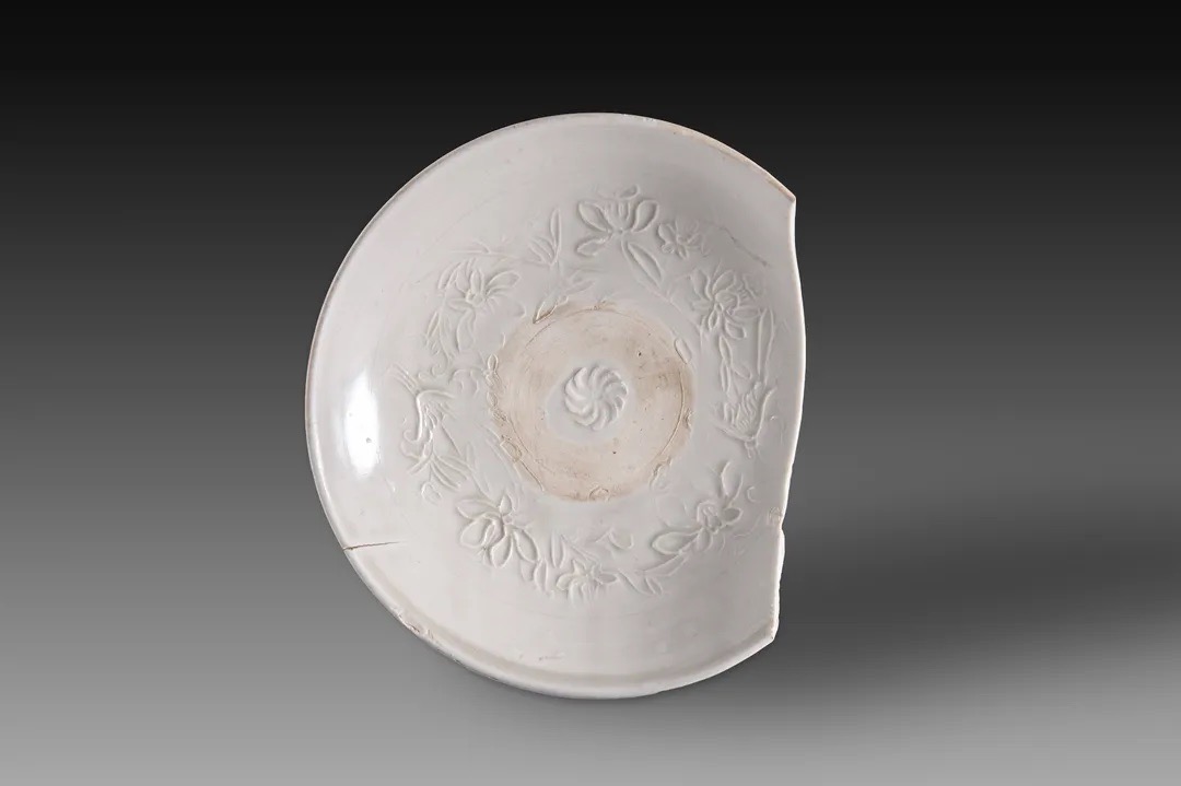 霍州窯出土的金代細(xì)白瓷印花淺盤(蓮紋)。山西省考古研究院供圖
