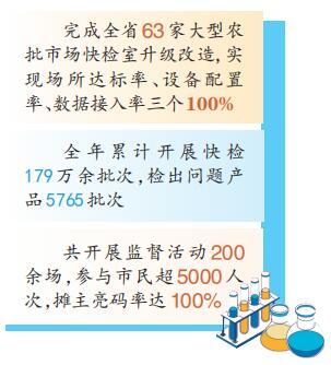 完成全省63家大型農(nóng)批市場快檢室升級改造,實現(xiàn)場所達(dá)標(biāo)率、設(shè)備配置率、數(shù)據(jù)接入率三個100%;通過高頻次檢測,實現(xiàn)農(nóng)批市場經(jīng)營主體100%覆蓋;食用農(nóng)產(chǎn)品追溯,入場經(jīng)營戶“一戶一碼”賦碼率100%……