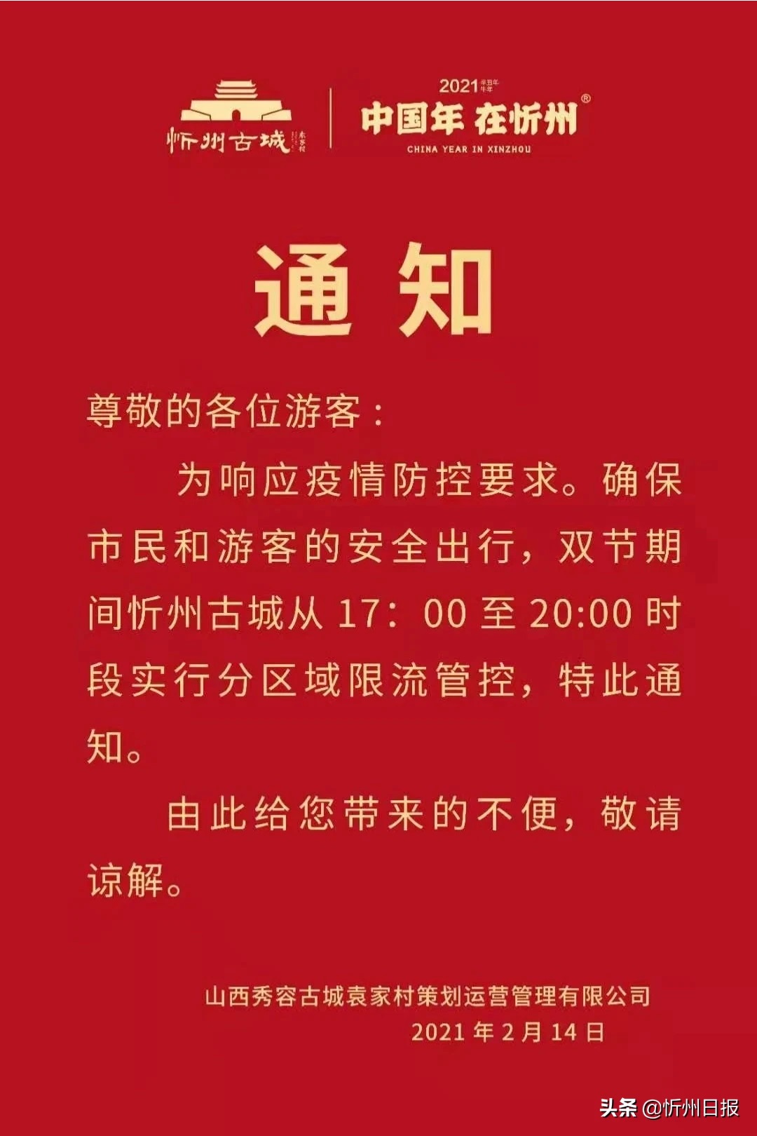忻州古城發(fā)布最新通知!相互轉(zhuǎn)告