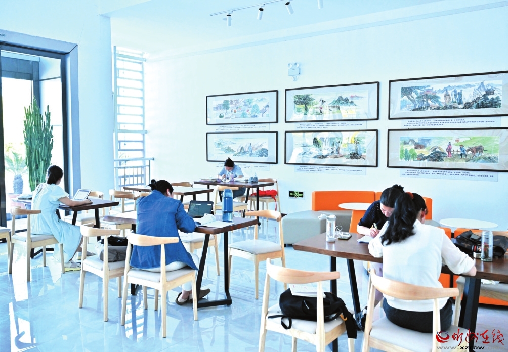 在公園遺山文化館一樓大廳設(shè)置純公益性的“城市書房”,配置免費(fèi)的直飲水機(jī)、儲物柜和休閑座椅。前不久,有位經(jīng)常在此復(fù)習(xí)的青年成功“上岸”,還特地和父母一起來公園表示感謝。
