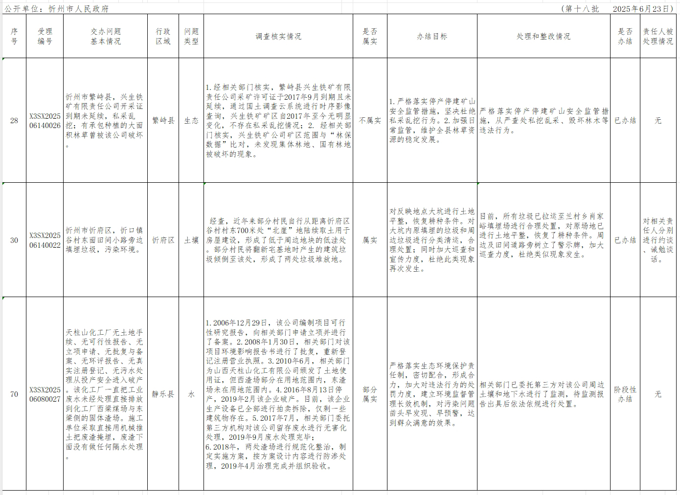 中央生態(tài)環(huán)境保護督察組群眾信訪舉報轉(zhuǎn)辦和邊督邊改公開情況一覽表(第十八批)