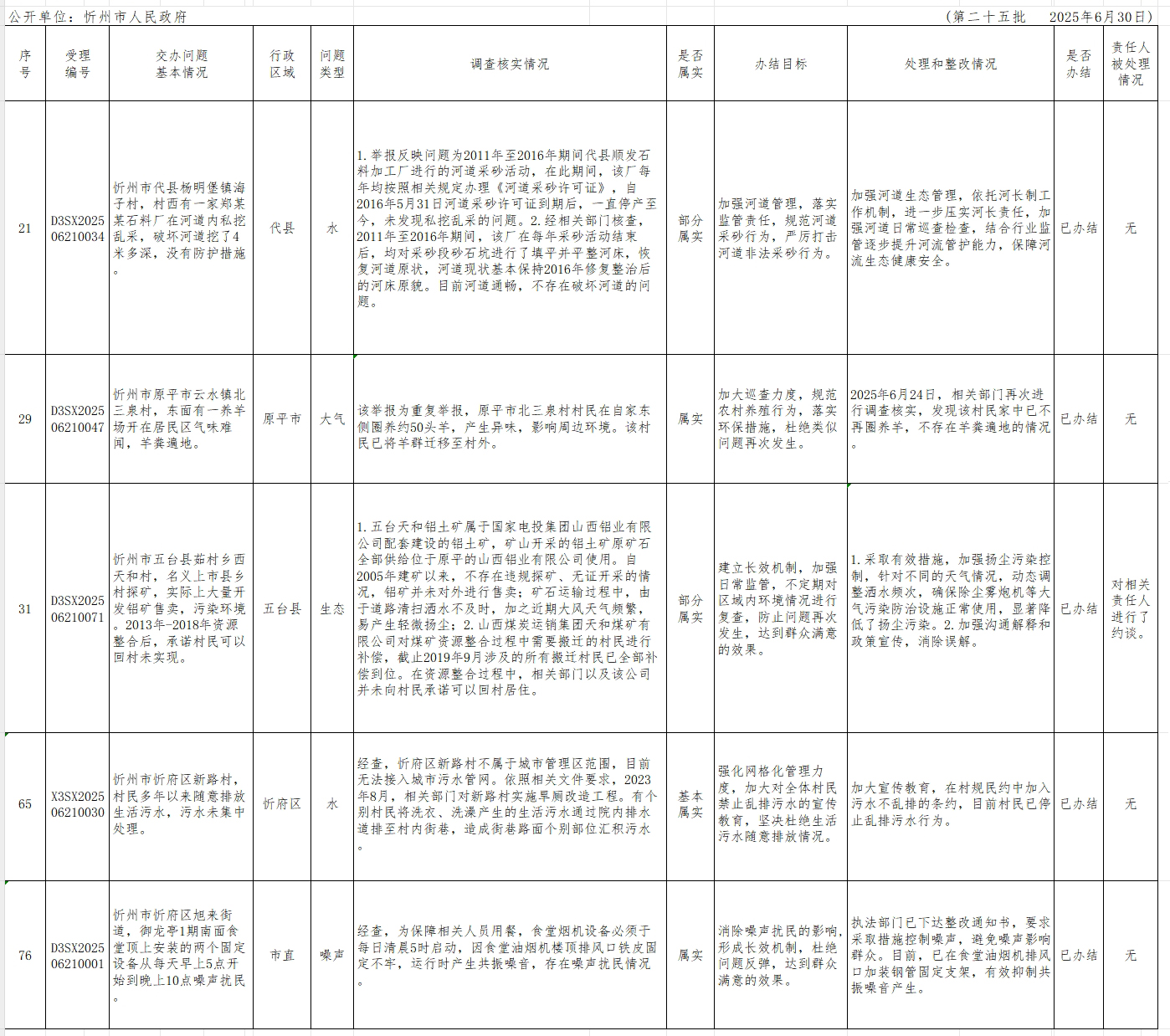中央生態(tài)環(huán)境保護督察組群眾信訪舉報轉辦和邊督邊改公開情況一覽表(第二十五批)