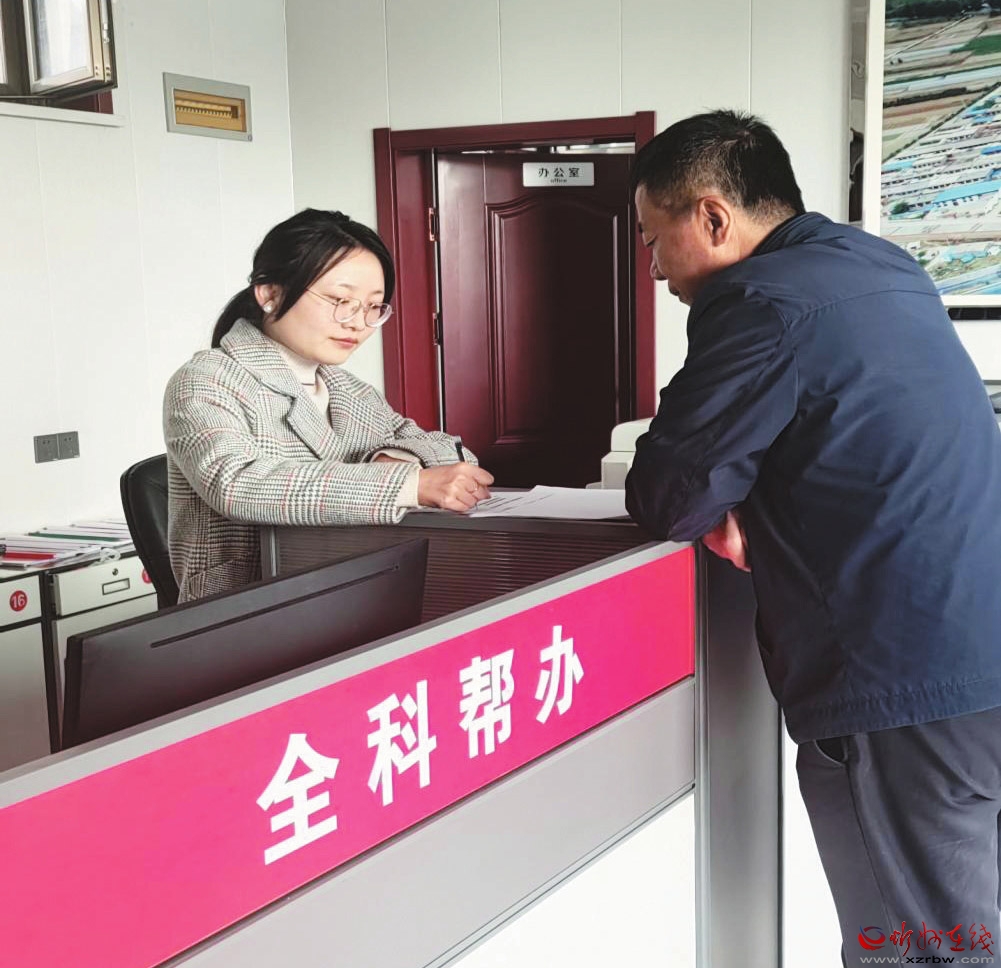 張雪在便民中心幫助村民解決遇到的難題。