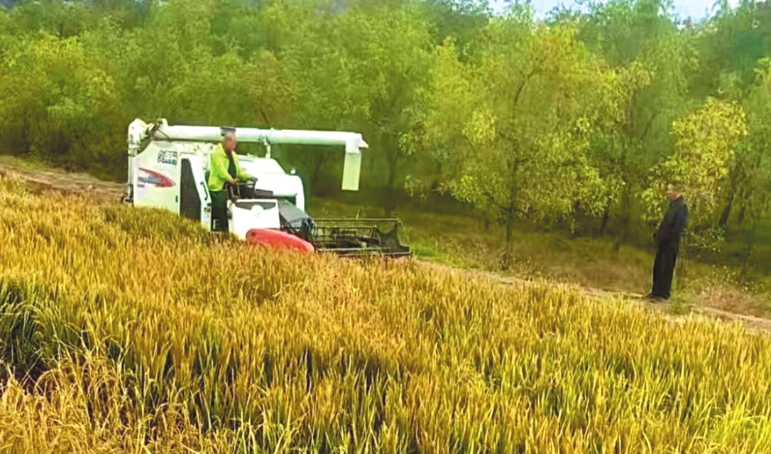 金秋時(shí)節(jié),保德縣馮家川鄉(xiāng)的20余畝鹽堿地試種稻田里,金黃稻穗壓彎了稻稈,微風(fēng)拂過,掀起層層“金浪”。隨著聯(lián)合收割機(jī)的轟鳴聲響起,成片水稻被快速切割、脫粒、清選,飽滿的谷粒源源不斷地被送入儲糧箱,標(biāo)志著當(dāng)?shù)厥状嘻}堿地水稻試種迎來豐收。經(jīng)測算,畝產(chǎn)達(dá)830斤左右,順利達(dá)成預(yù)期產(chǎn)量目標(biāo)。