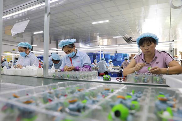 2017年,連樟村建起了一個913平方米的車間,2018年開始投產(chǎn),主要生產(chǎn)兒童玩具,村民責(zé)負(fù)流水線上的裝配生產(chǎn),成品發(fā)往全國各地,有些還出口到了海外。通過引導(dǎo)市場資本向農(nóng)村轉(zhuǎn)移,地處粵北偏遠(yuǎn)山區(qū)的連樟村辦起了工廠,不僅帶動本地村民出現(xiàn)返鄉(xiāng)潮,連鄰近的外鎮(zhèn)村民也有了更多就業(yè)選擇。