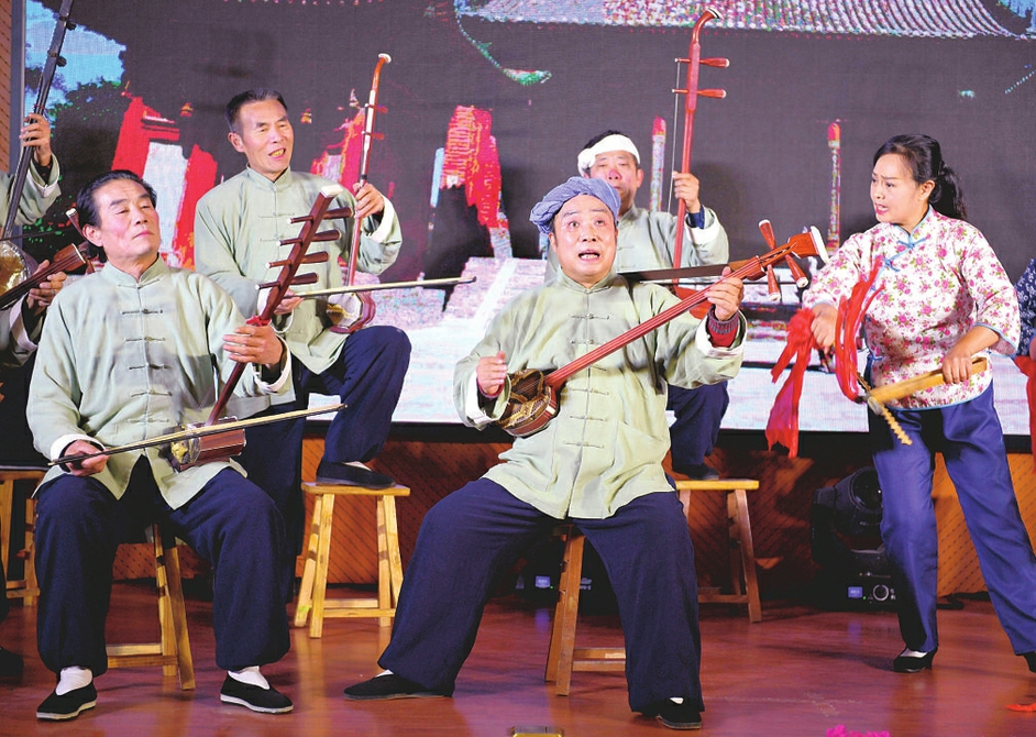 1月10日晚,運(yùn)城市稷山縣的民間藝人在表演稷山老調(diào)《敬獻(xiàn)稷王》。稷山老調(diào),又叫稷山古琴書,是一種具有地方特色的曲藝唱腔,其內(nèi)容豐富,曲調(diào)悠揚(yáng),唱腔激昂,通俗易懂,至今已有二百多年歷史。稷山老調(diào)表演者主要由當(dāng)?shù)孛に嚾私M成,演員舉手投足、說唱間散發(fā)著濃郁的鄉(xiāng)土氣息,配合四胡、二胡、笛子、三弦、小揚(yáng)琴、鼓、快板等樂器的彈奏和擊打,給人以粗獷高亢、詼諧幽默的感覺,深受稷山乃至?xí)x南民眾喜聞樂見。稷山老調(diào)流行于稷山、新絳、河津、鄉(xiāng)寧等地,多在登高節(jié)、廟會(huì)祭祀和祈?;顒?dòng)中演出,表達(dá)人們祈求風(fēng)調(diào)雨順、五谷豐登、家庭和睦的美好愿望。