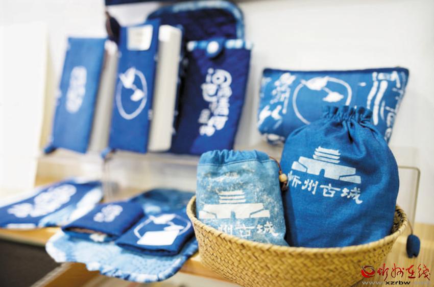 “傳統(tǒng)的印染手法有‘四纈’之說,即夾纈(夾染)、蠟纈(蠟染)、絞纈(扎染)、灰纈(藍印花布)。扎染與灰纈是我最常用的。”趙慧說,相較于其他印染手法,灰纈操作簡單便于量產(chǎn)且更易于設計,能夠讓她把家鄉(xiāng)傳統(tǒng)文化融入其中,讓更多人知道忻州、認識山西。