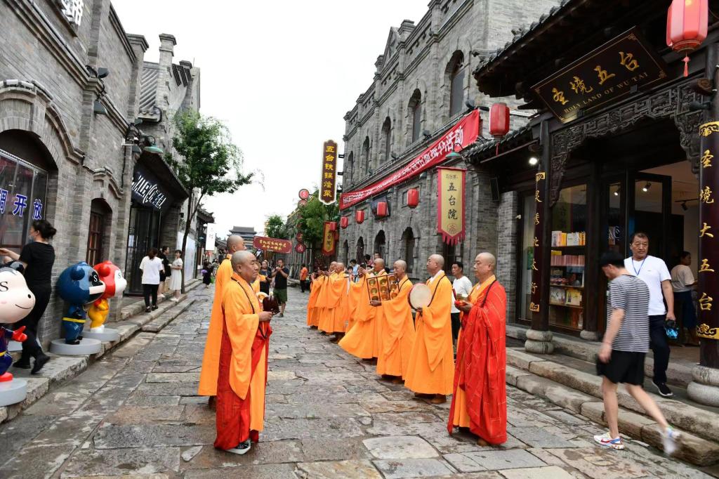 與此同時,在忻州古城的街巷內(nèi),一臺臺極具五臺元素的社火與“非遺”文藝表演精彩紛呈。一曲曲回聲悠長的嗩吶吹奏、一隊隊別具風(fēng)采的江南走秀、一聲聲居高廟宇的佛音偈語……仿佛讓人置身于其中,不僅在感受五臺文化魅力的同時,更加深了對五臺的了解和認知。