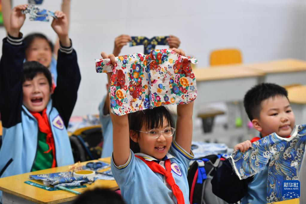 近年來,湖南省長沙市天心區(qū)紅衛(wèi)小學積極落實“雙減”政策,聯(lián)合專業(yè)機構設計了豐富的課后服務內(nèi)容,包含剪紙藝術、手工風箏、傳統(tǒng)服飾設計、趣味臉譜、景泰藍掐絲琺瑯畫、拓印、皮影戲等,讓學生零距離感受非遺,激發(fā)學生對傳統(tǒng)文化的興趣,推動非遺的傳承,助力“雙減”。(新華社記者 陳澤國 攝)