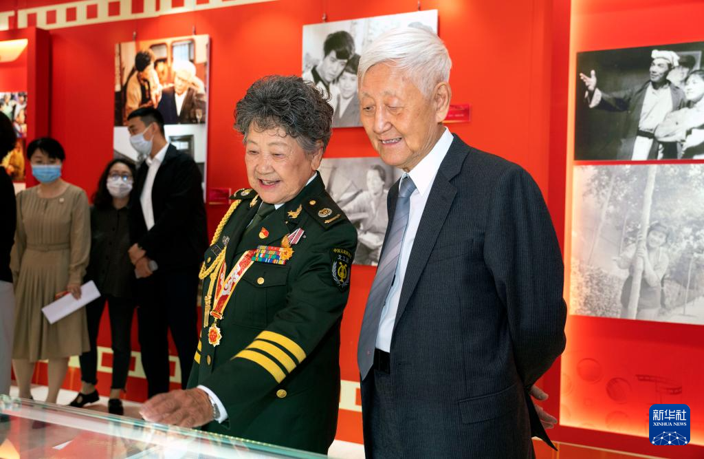 5月19日,老藝術(shù)家徐曉鐘(右一)、陶玉玲(右二)在第六屆中國(guó)文聯(lián)知名老藝術(shù)家藝術(shù)成就展上觀展。