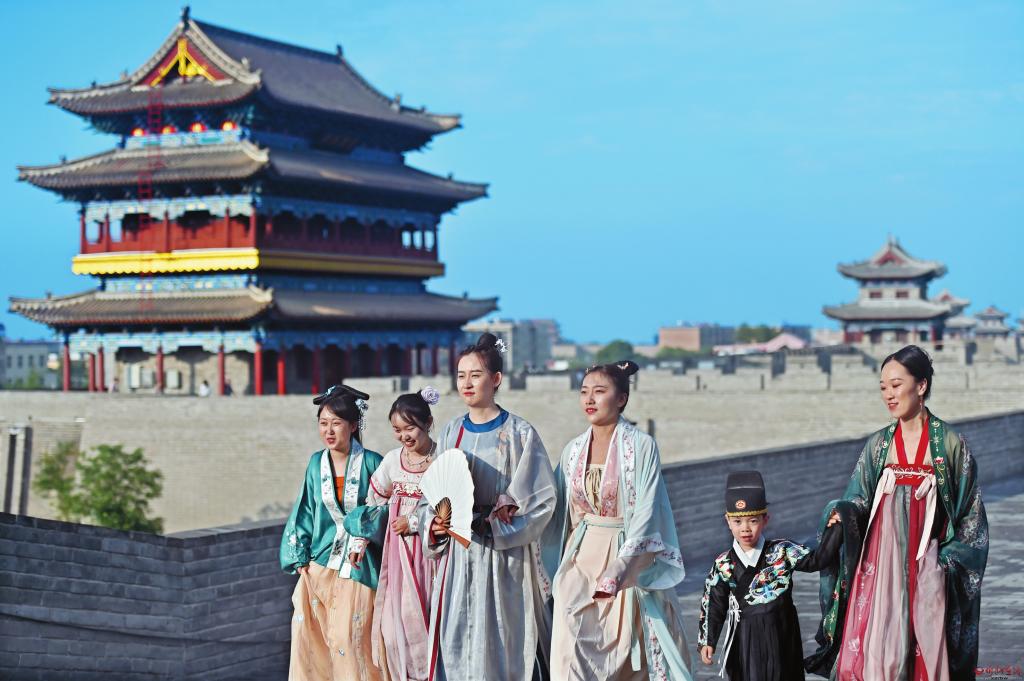 忻州古城舉辦的“漢服大秀”活動,為消費者帶來了新的體驗。 馮曉磊 攝
