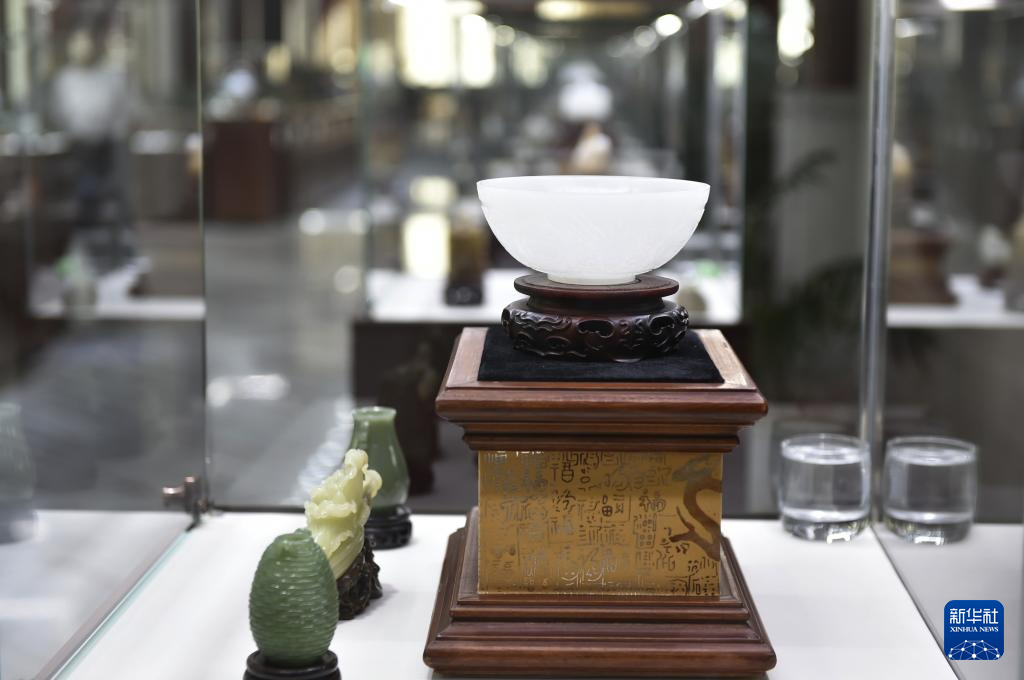 這是在位于河南省鎮(zhèn)平縣的中國(guó)玉雕大師創(chuàng)意園展廳內(nèi)拍攝的玉雕作品(8月16日攝)。