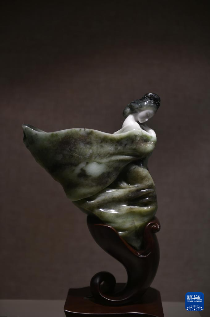 這是在河南省鎮(zhèn)平縣一家玉雕企業(yè)的展廳內(nèi)拍攝的玉雕作品《綠云清夢(mèng)》(8月16日攝)。