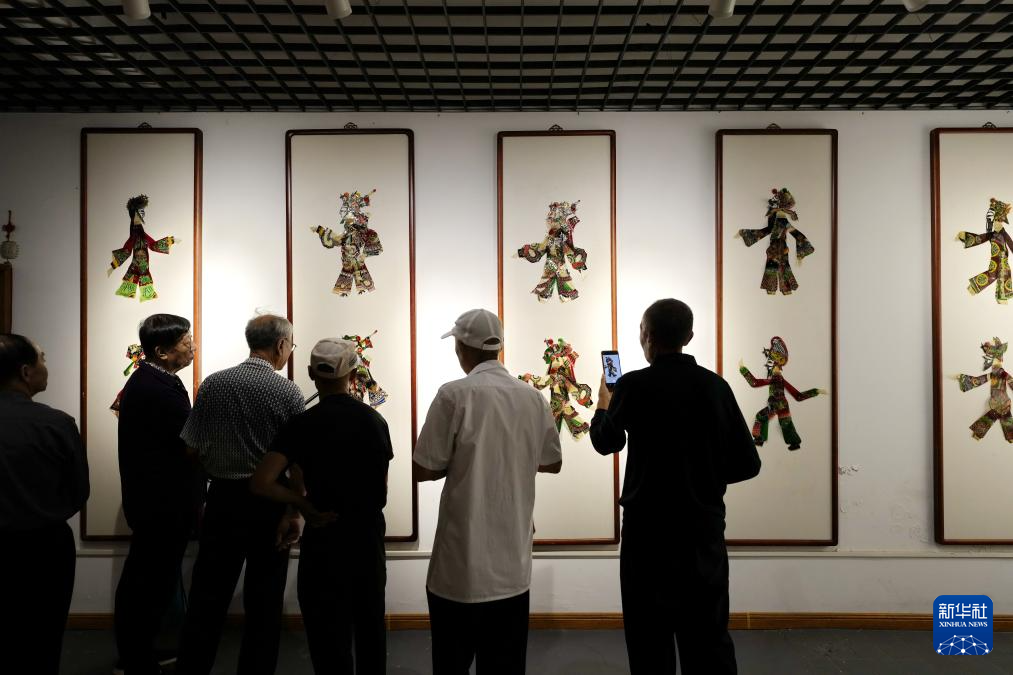 9月16日,市民在玉田縣“非遺會客廳”展室內參觀展出的皮影人。