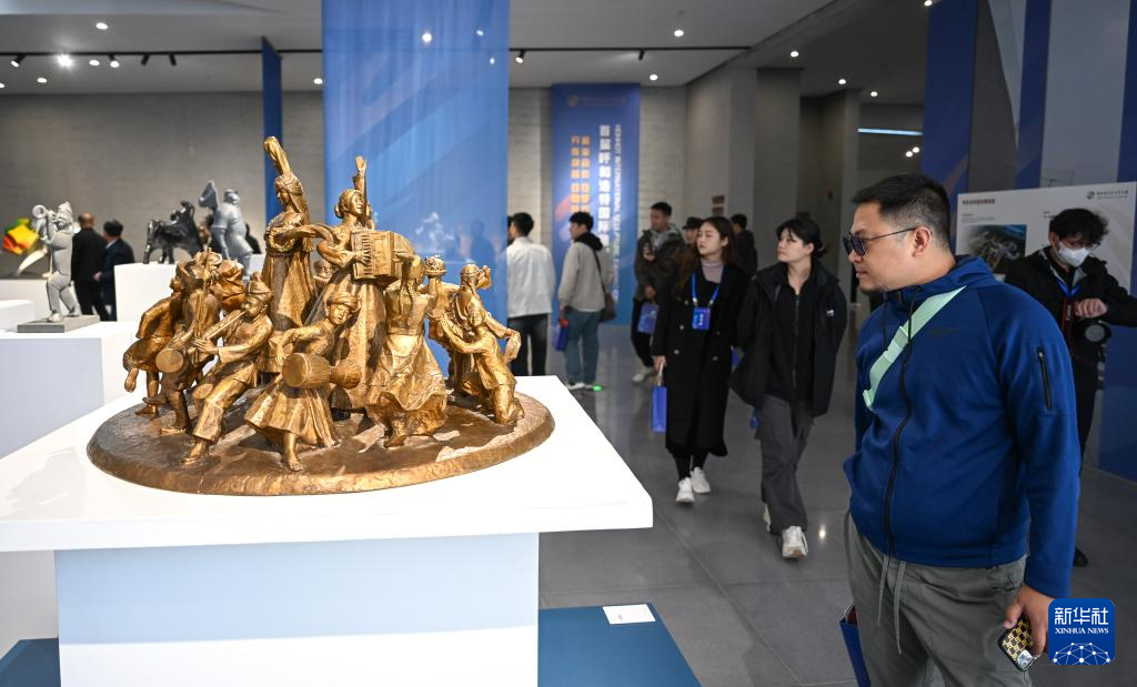 10月14日,觀眾在首屆呼和浩特國際雕塑藝術(shù)展上觀賞雕塑作品。